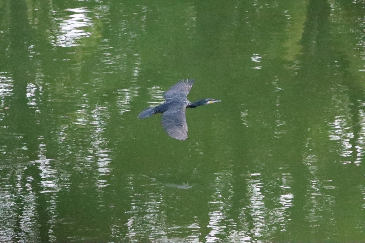 飛騨の森から北外堀を覗くと、カワウがいました。
