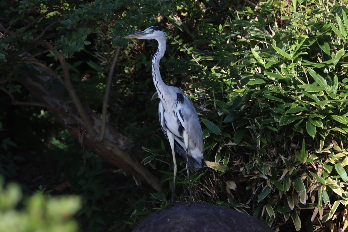 日本庭園ではアオサギがいました。