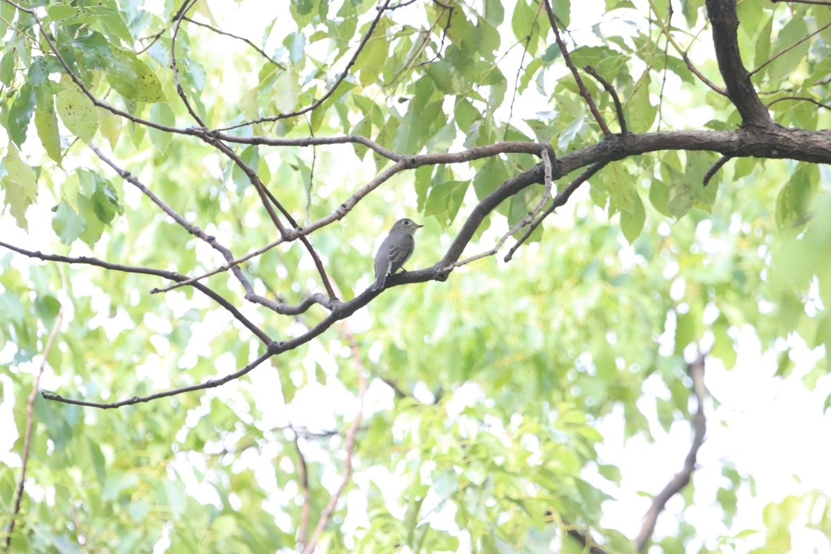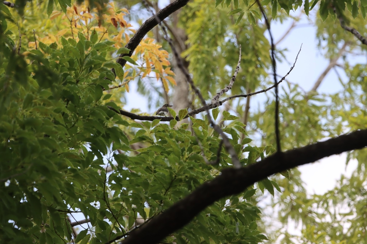 沖縄復帰の森の高い木の上にはコサメビタキがいました。